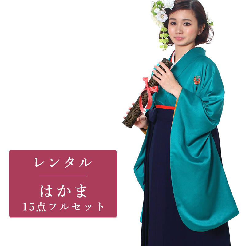 卒業式 着物 袴 15点セット 二尺袖 卒業袴 グリーン 無地|花紋 g044