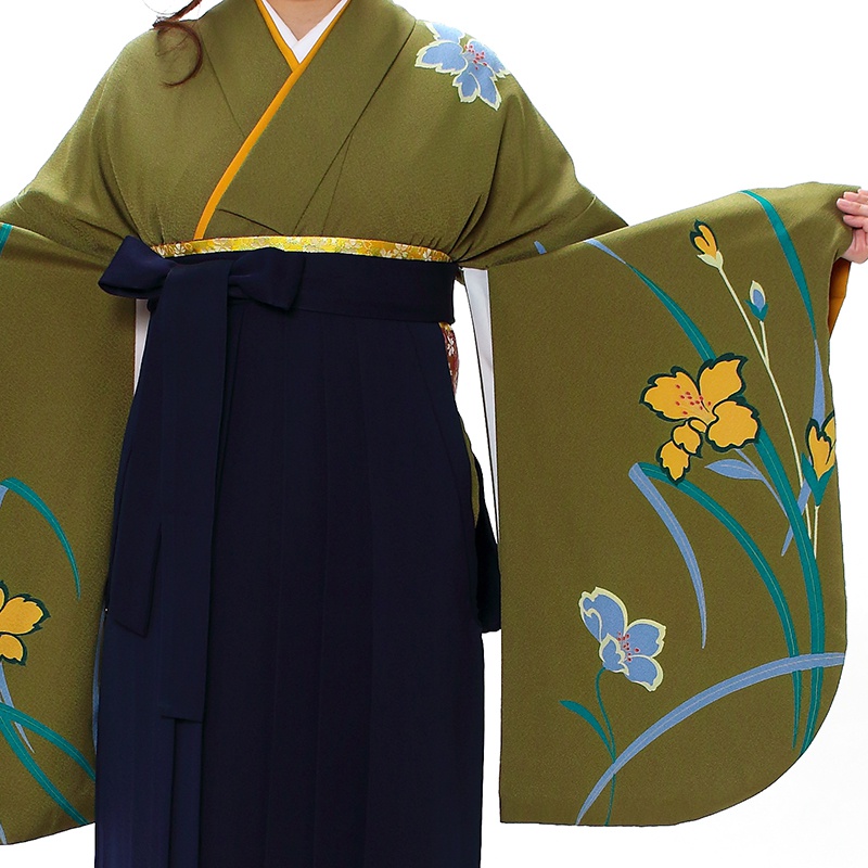 卒業式 着物 袴 15点セット 二尺袖 卒業袴 グリーン 花柄 g053