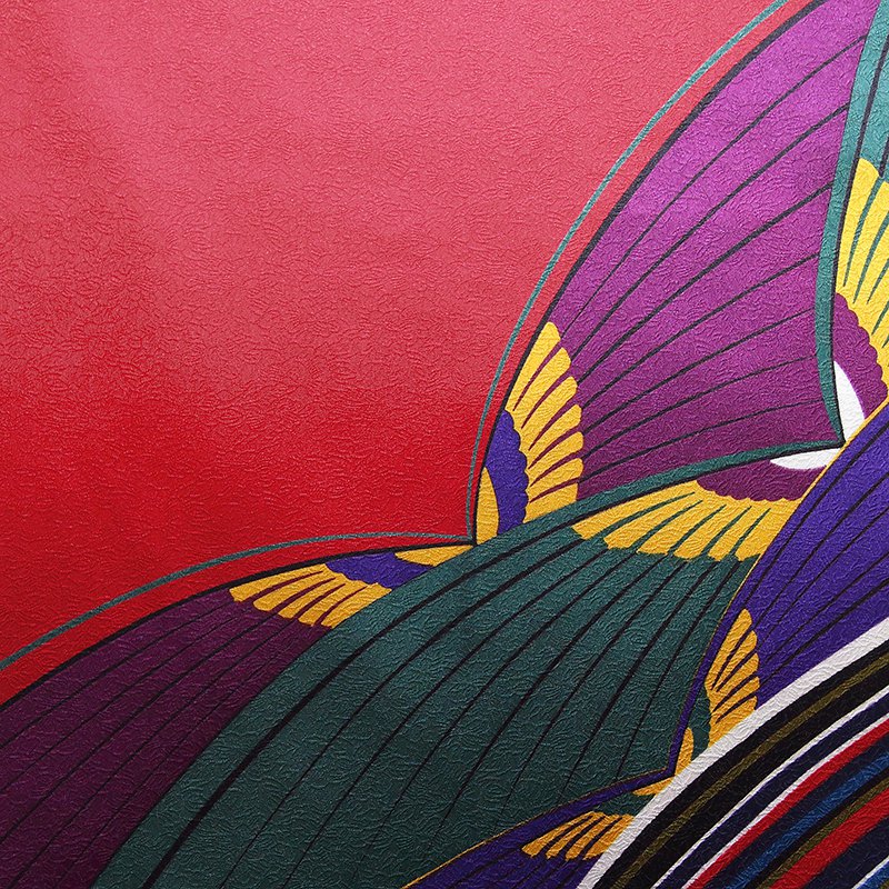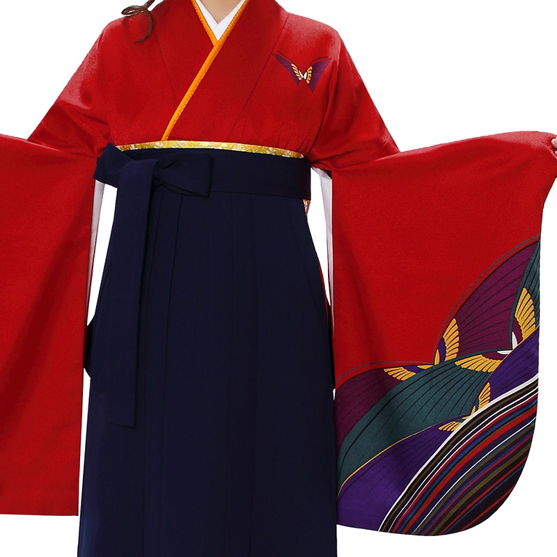 女の子の卒業式のお祝いにぴったりのレンタル着物と袴セットです。シンプルなテイストでレッド蝶のお着物となります。