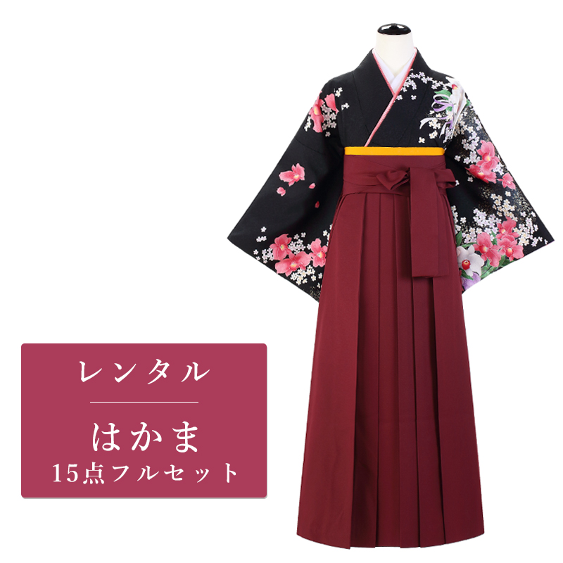 卒業式 着物 袴 15点セット 二尺袖 卒業袴 ブラック カトレア|花柄 g172