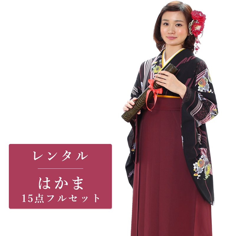 卒業式 着物 袴 15点セット 二尺袖 卒業袴 ブラック 花柄|矢羽根 g185