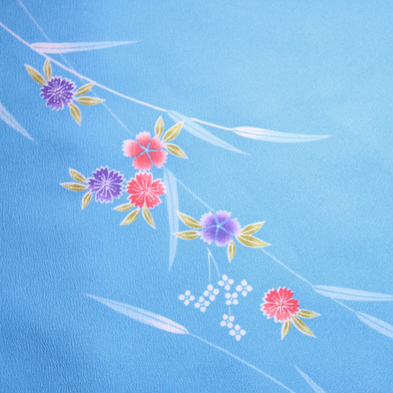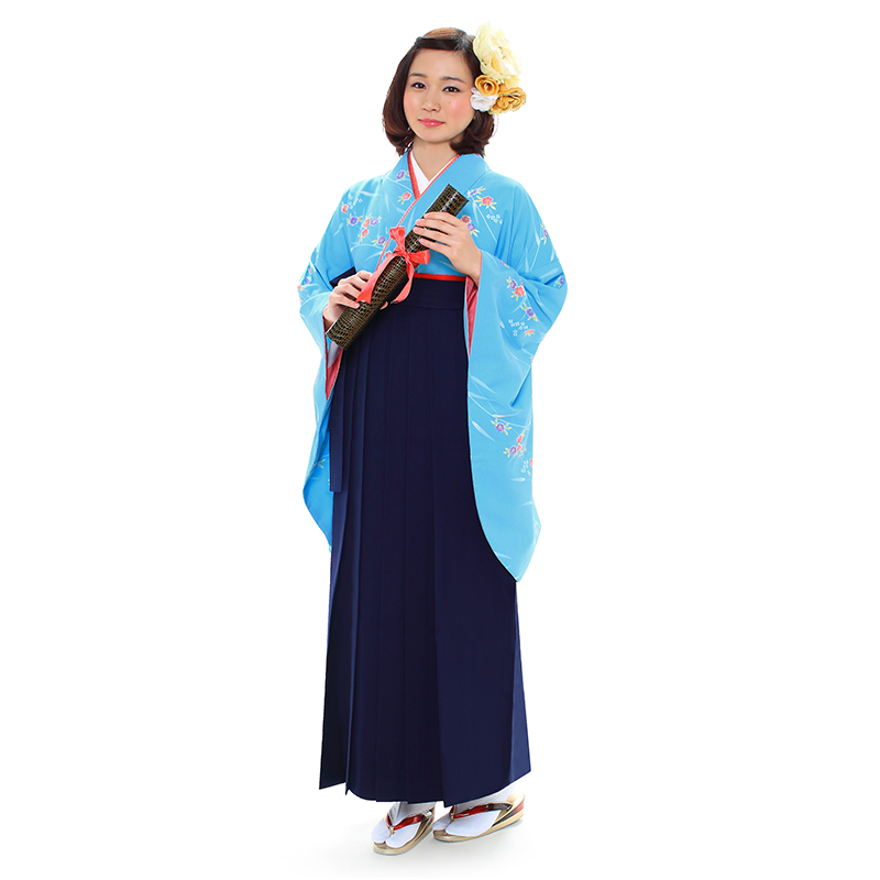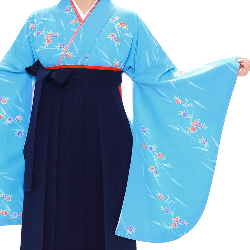 女の子の卒業式のお祝いにぴったりのレンタル着物と袴セットです。日本の伝統柄のテイストでブルー撫子|花柄のお着物となります。