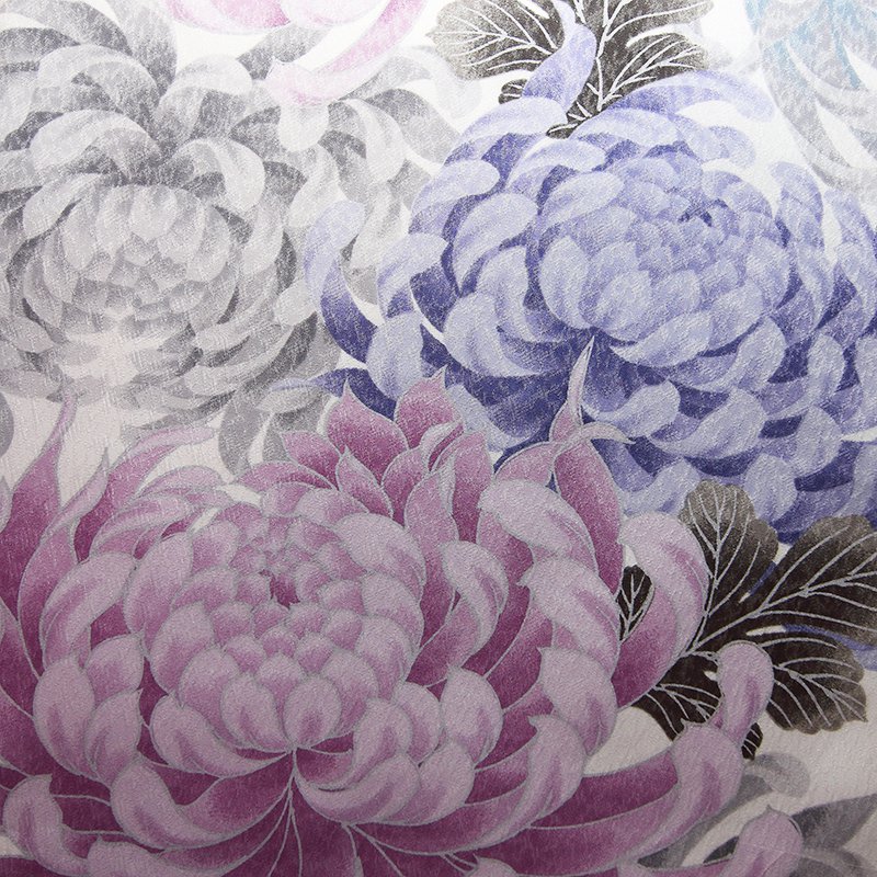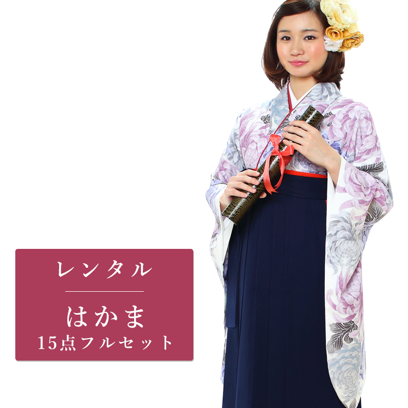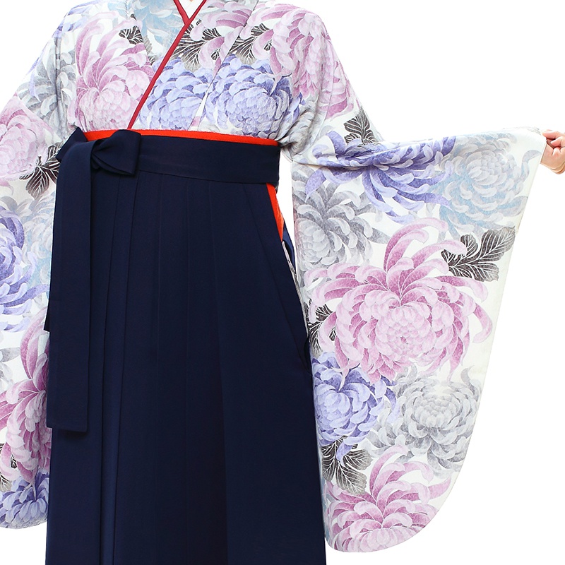 女の子の卒業式のお祝いにぴったりのレンタル着物と袴セットです。日本の伝統柄のテイストでホワイト菊|花柄のお着物となります。