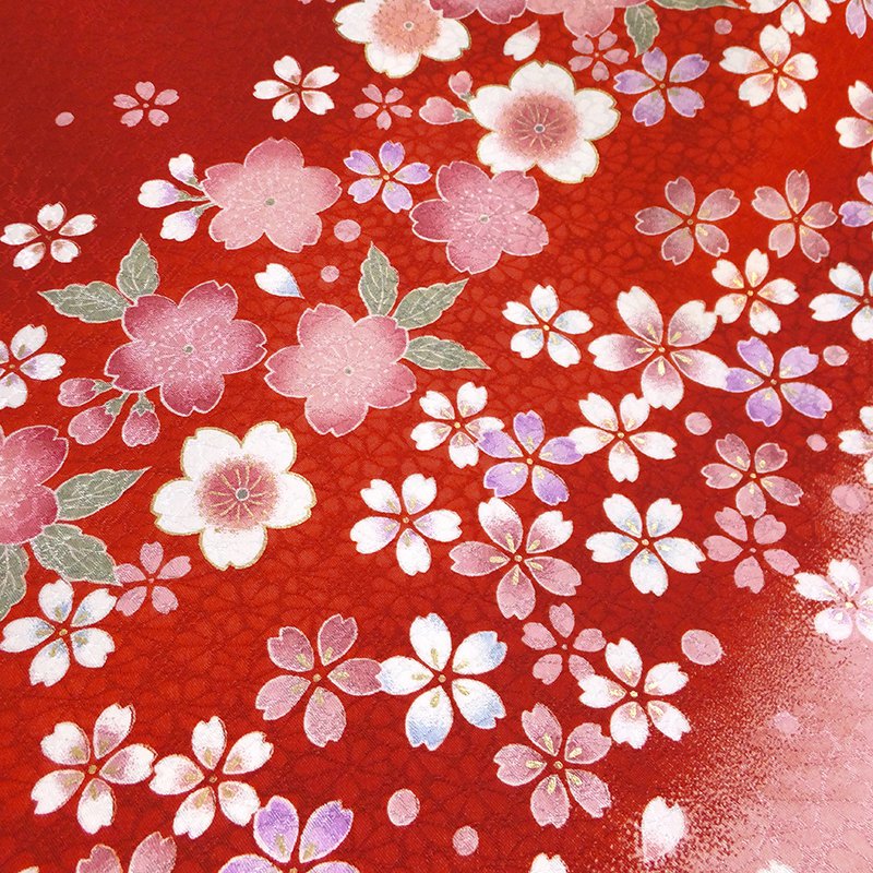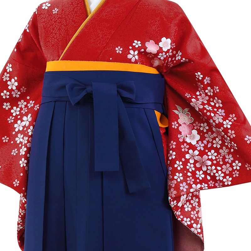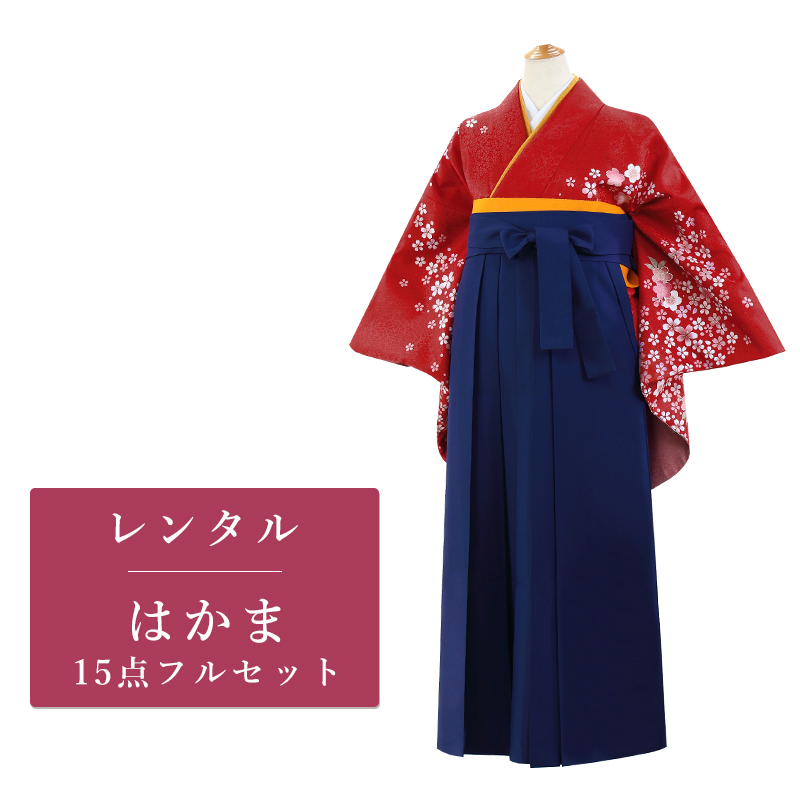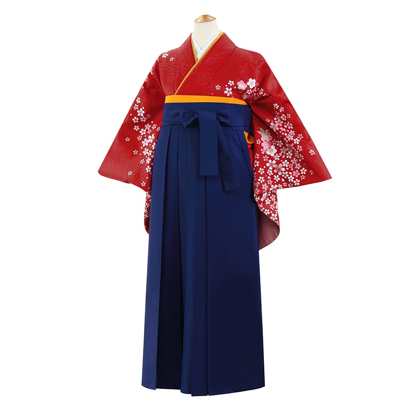 女の子の卒業式のお祝いにぴったりのレンタル着物と袴セットです。日本の伝統柄のテイストでレッド桜|花柄のお着物となります。