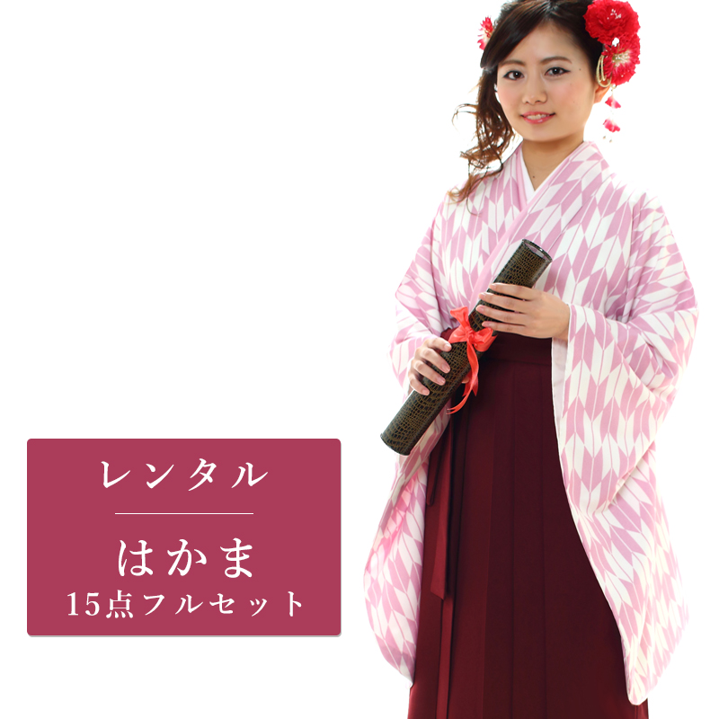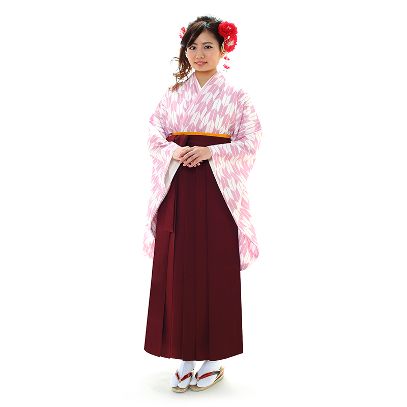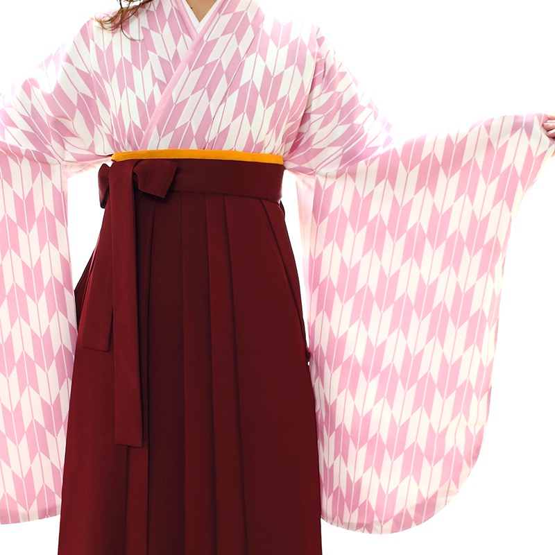 女の子の卒業式のお祝いにぴったりのレンタル着物と袴セットです。日本の伝統柄のテイストでピンク矢絣|古典柄のお着物となります。