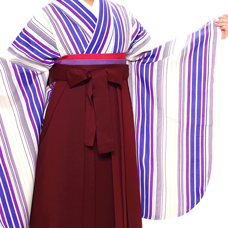 卒業式 着物 袴 15点セット 二尺袖 卒業袴 パープル ストライプ g238