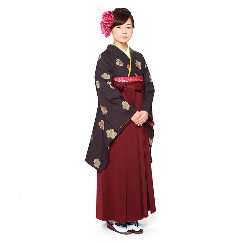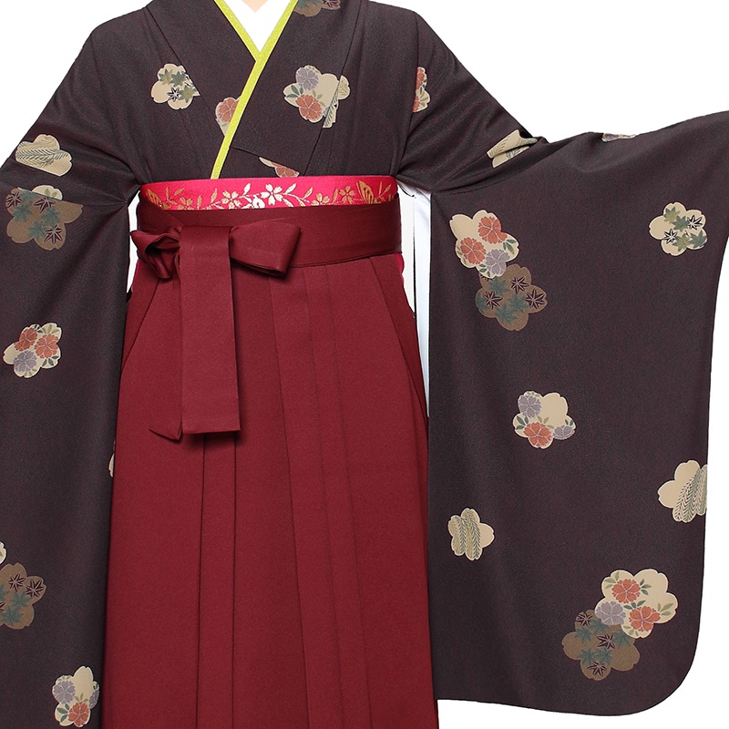 女の子の卒業式のお祝いにぴったりのレンタル着物と袴セットです。日本の伝統柄のテイストでブラウン桜|花柄のお着物となります。