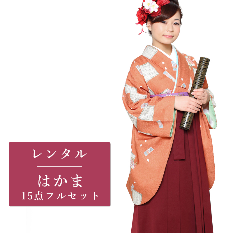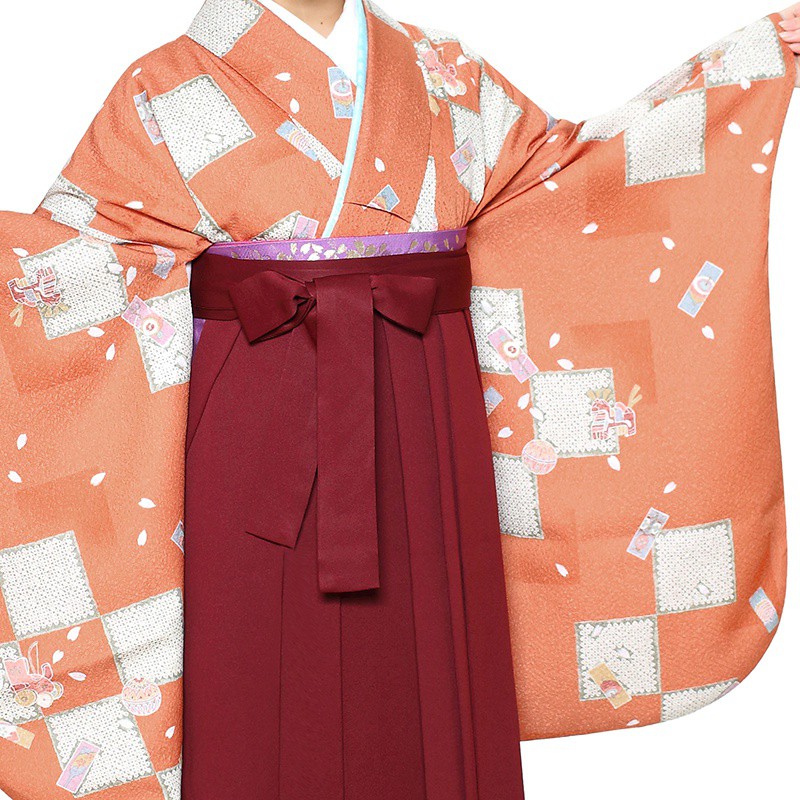 卒業式 着物 袴 15点セット 二尺袖 卒業袴 オレンジ 市松|桜|古典柄|花柄 g355