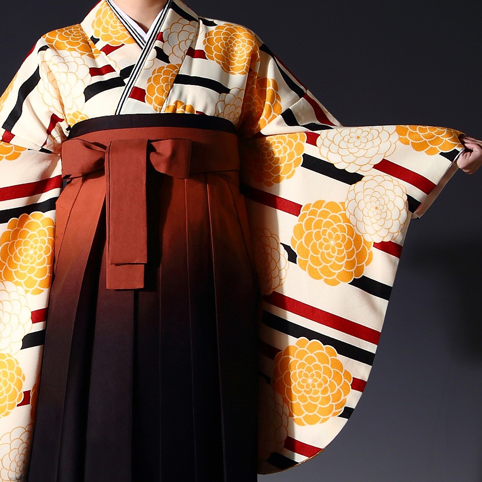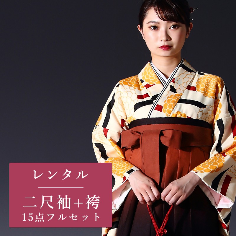 卒業式 着物 袴 15点セット 二尺袖 卒業袴 クリーム|イエロー 菊|花柄 g433