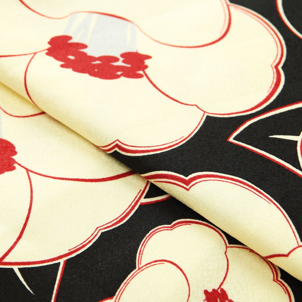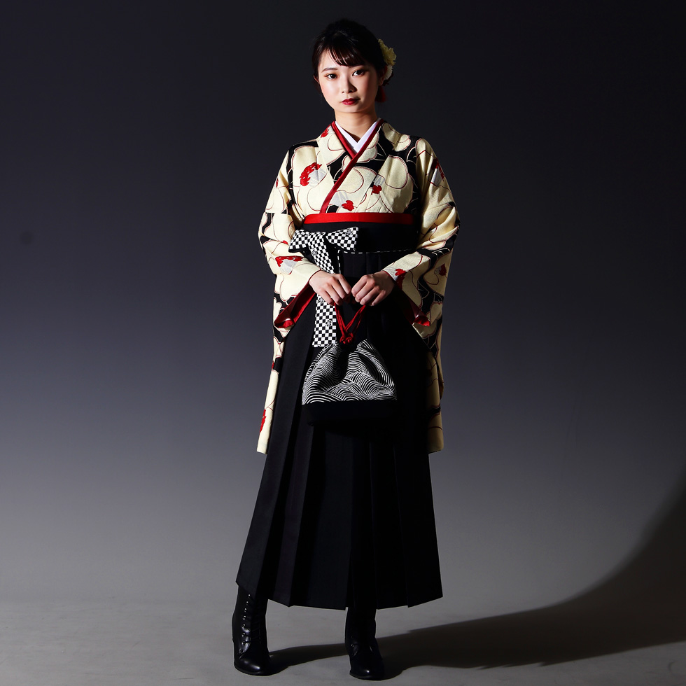 卒業式 着物 袴 15点セット 二尺袖 卒業袴 ブラック|クリーム 椿|花柄 g443
