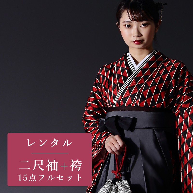 卒業式 着物 袴 15点セット 二尺袖 卒業袴 レッド 鱗|古典柄 g448