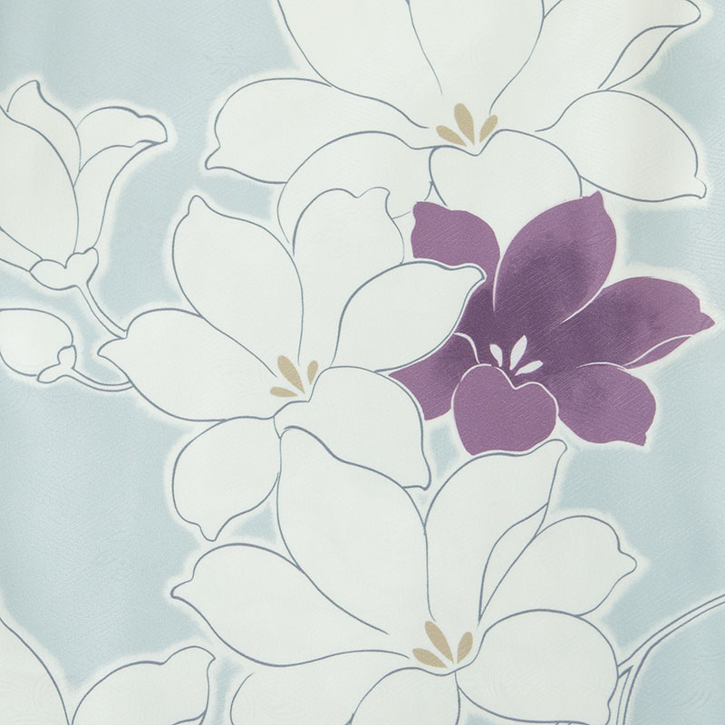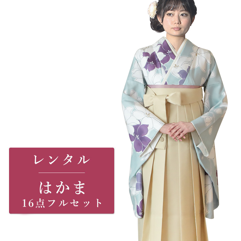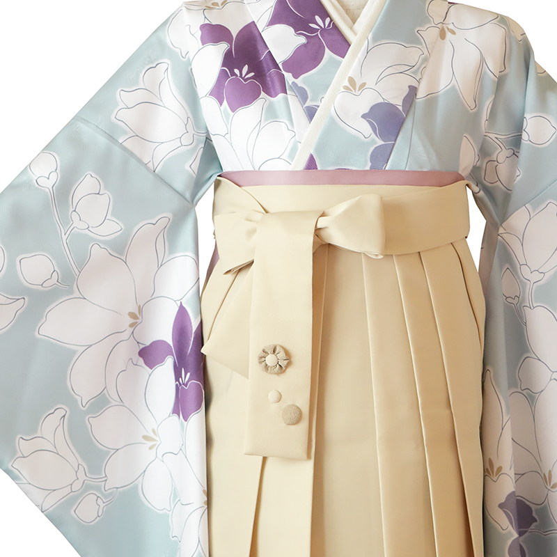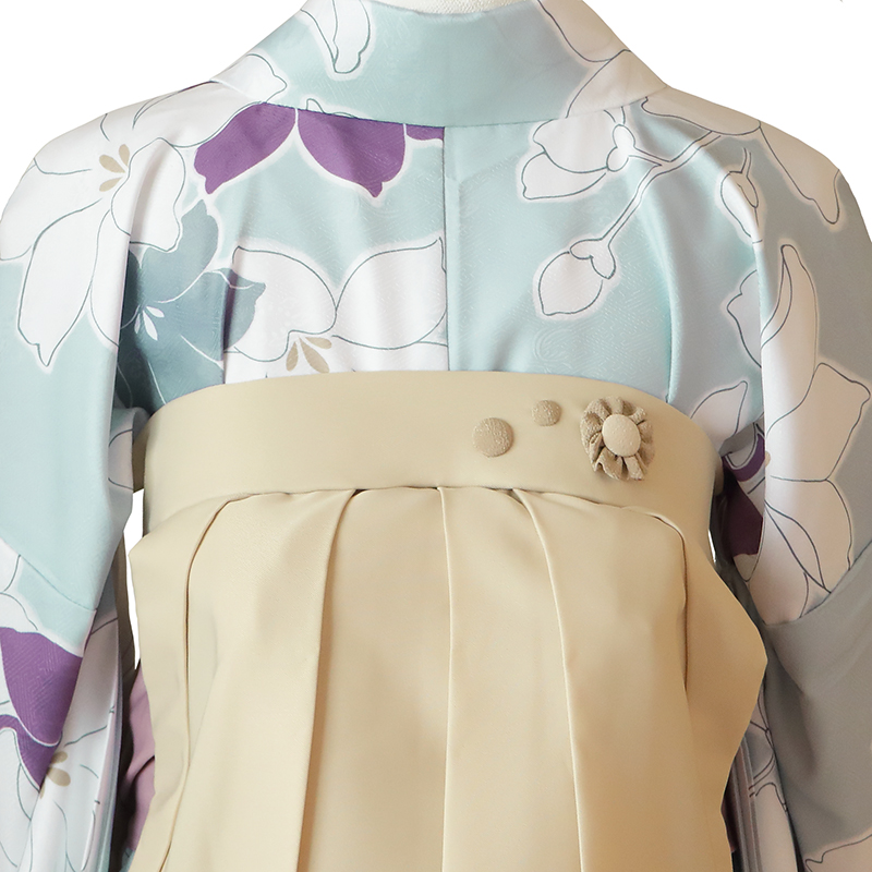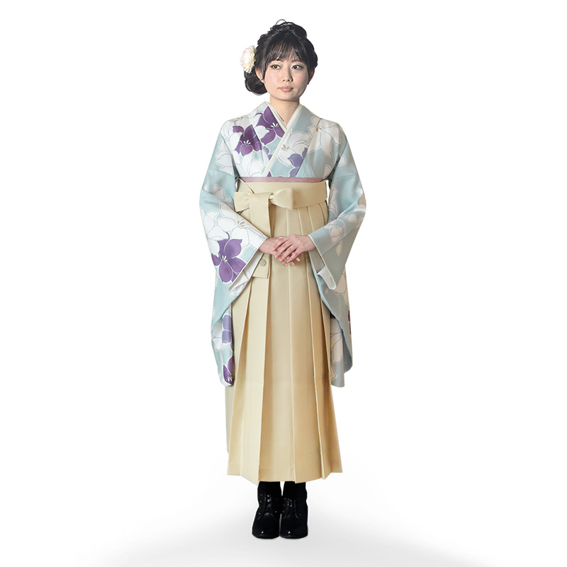 女の子の卒業式のお祝いにぴったりのレンタル着物と袴セットです。トレンド感のあるデザインでグレー花柄のお着物となります。