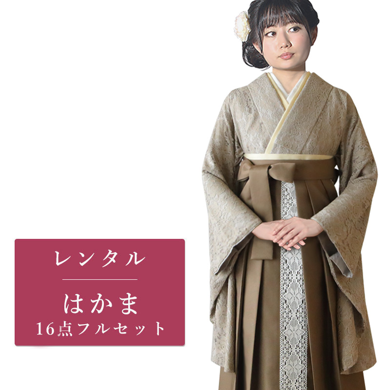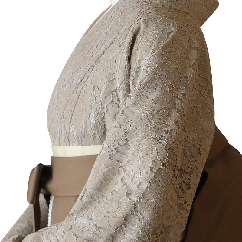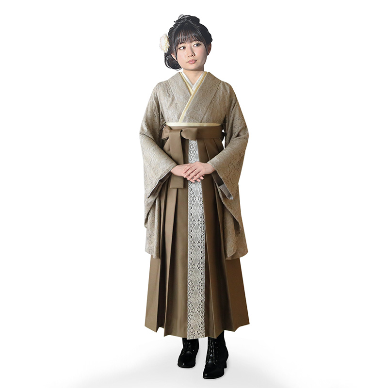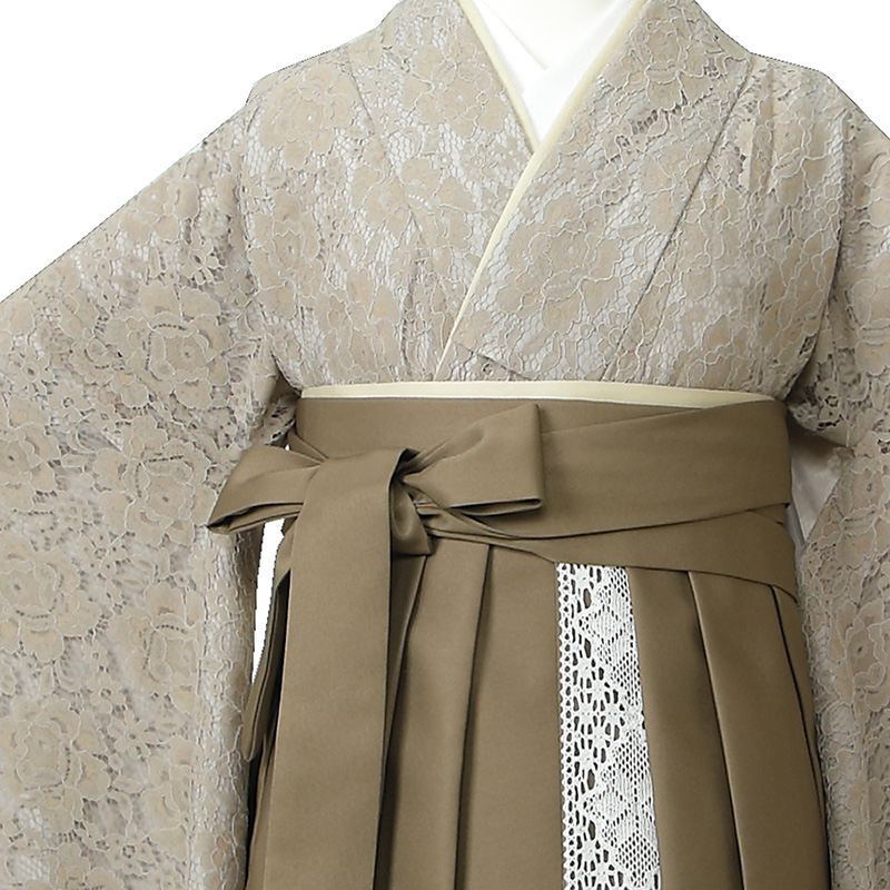 女の子の卒業式のお祝いにぴったりのレンタル着物と袴セットです。トレンド感のあるデザインでブラウン花柄|レースのお着物となります。