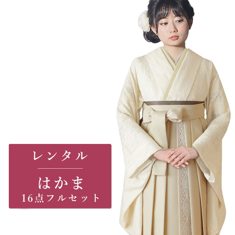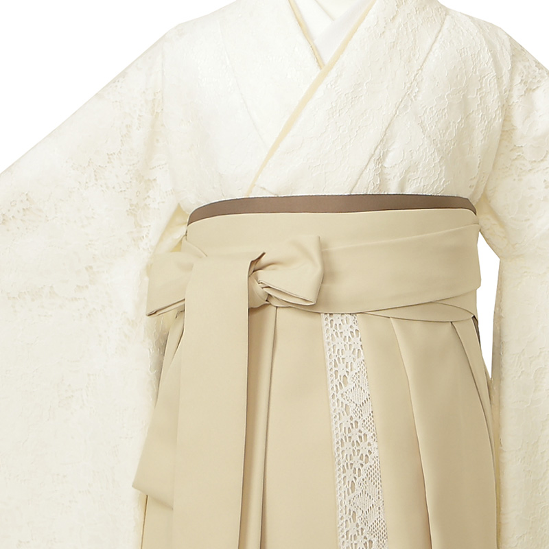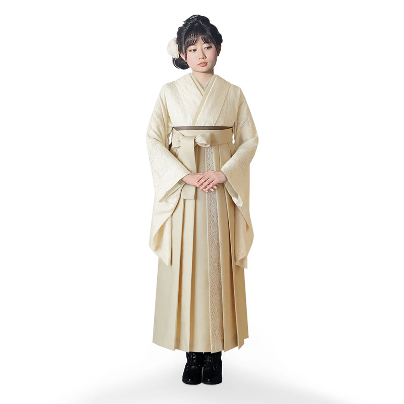 女の子の卒業式のお祝いにぴったりのレンタル着物と袴セットです。トレンド感のあるデザインでホワイト花柄|レースのお着物となります。
