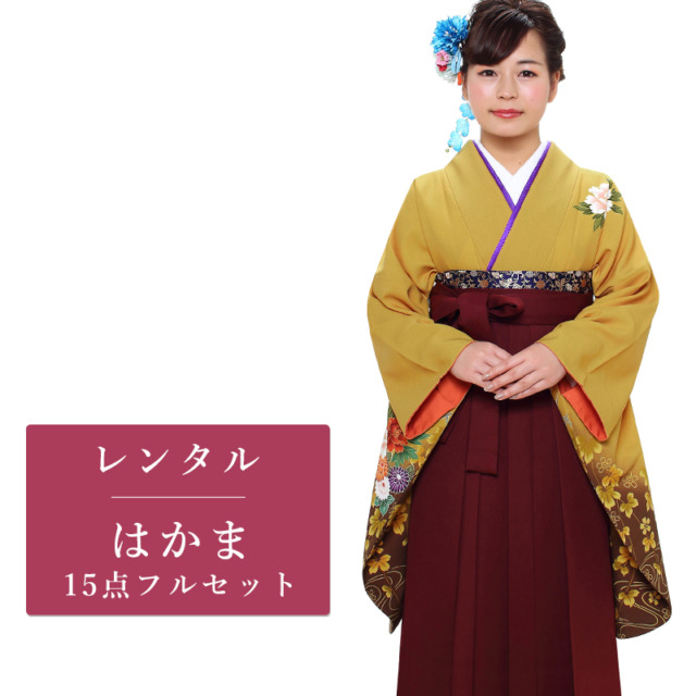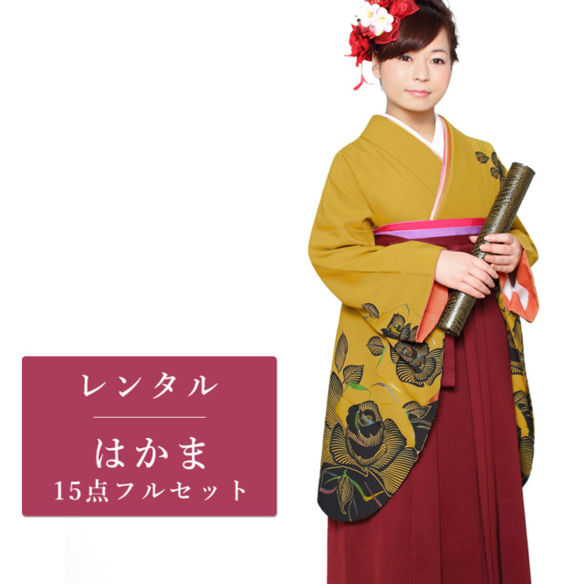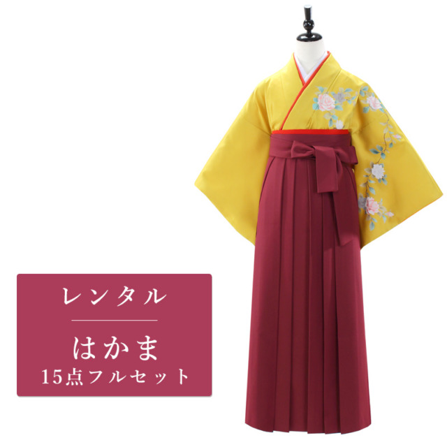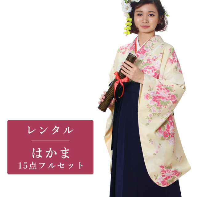 卒業式 着物 袴 15点セット 二尺袖 卒業袴 クリーム|レッド 椿|梅|花柄 g508