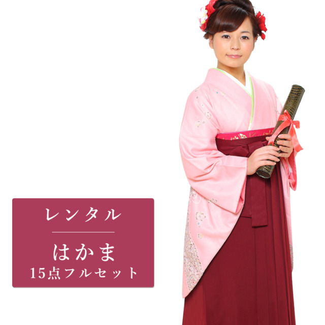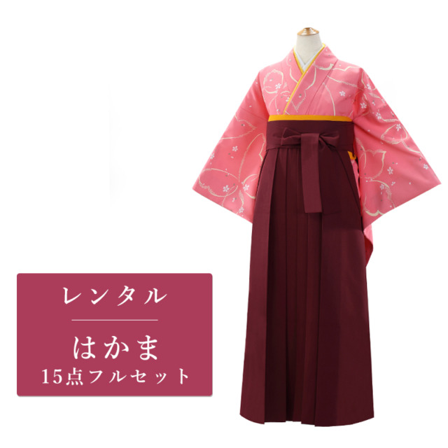 卒業式 着物 袴 15点セット 二尺袖 卒業袴 ピンク 花柄|レース g566